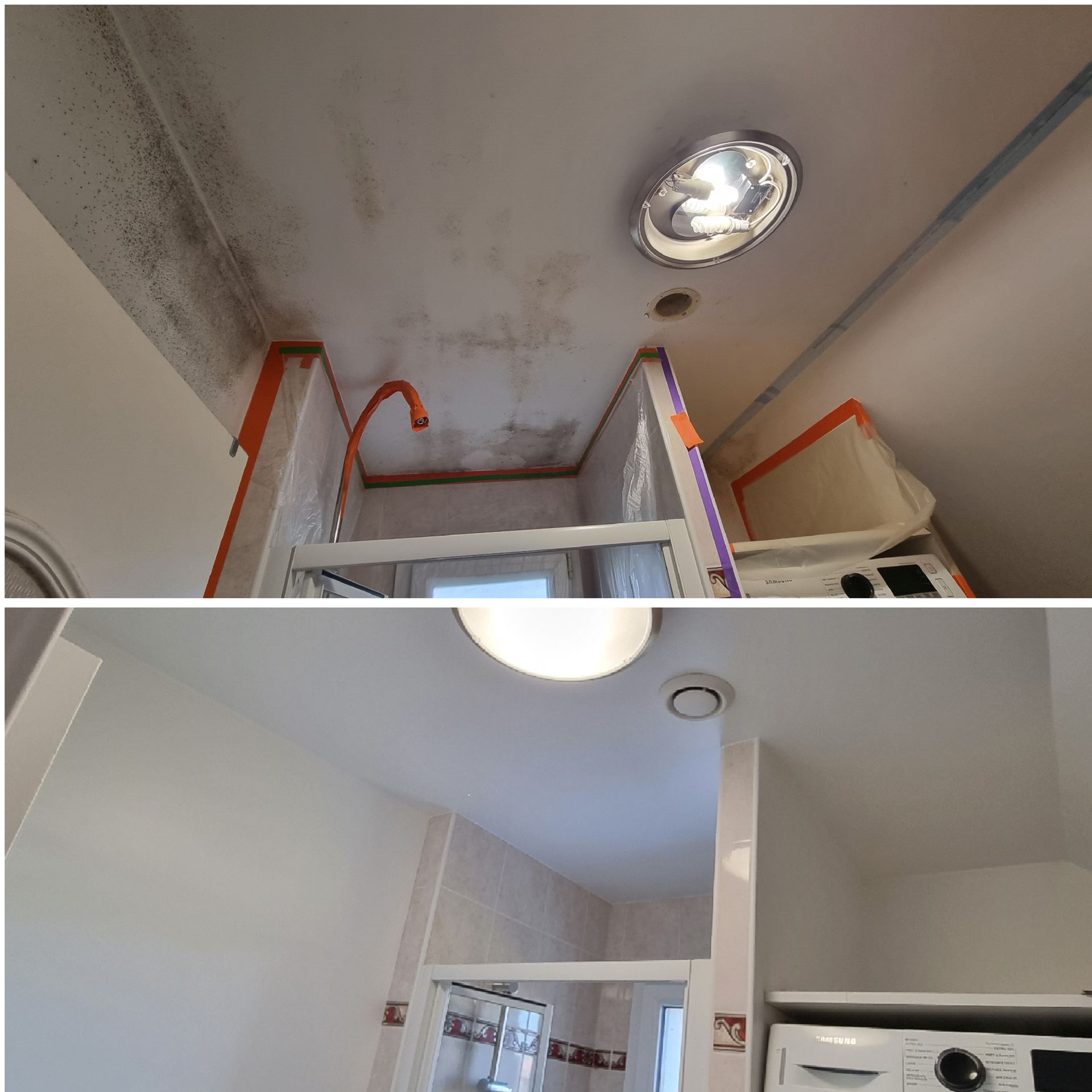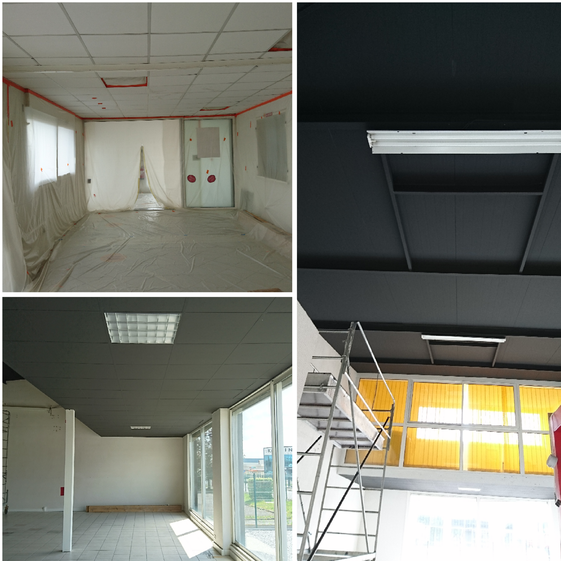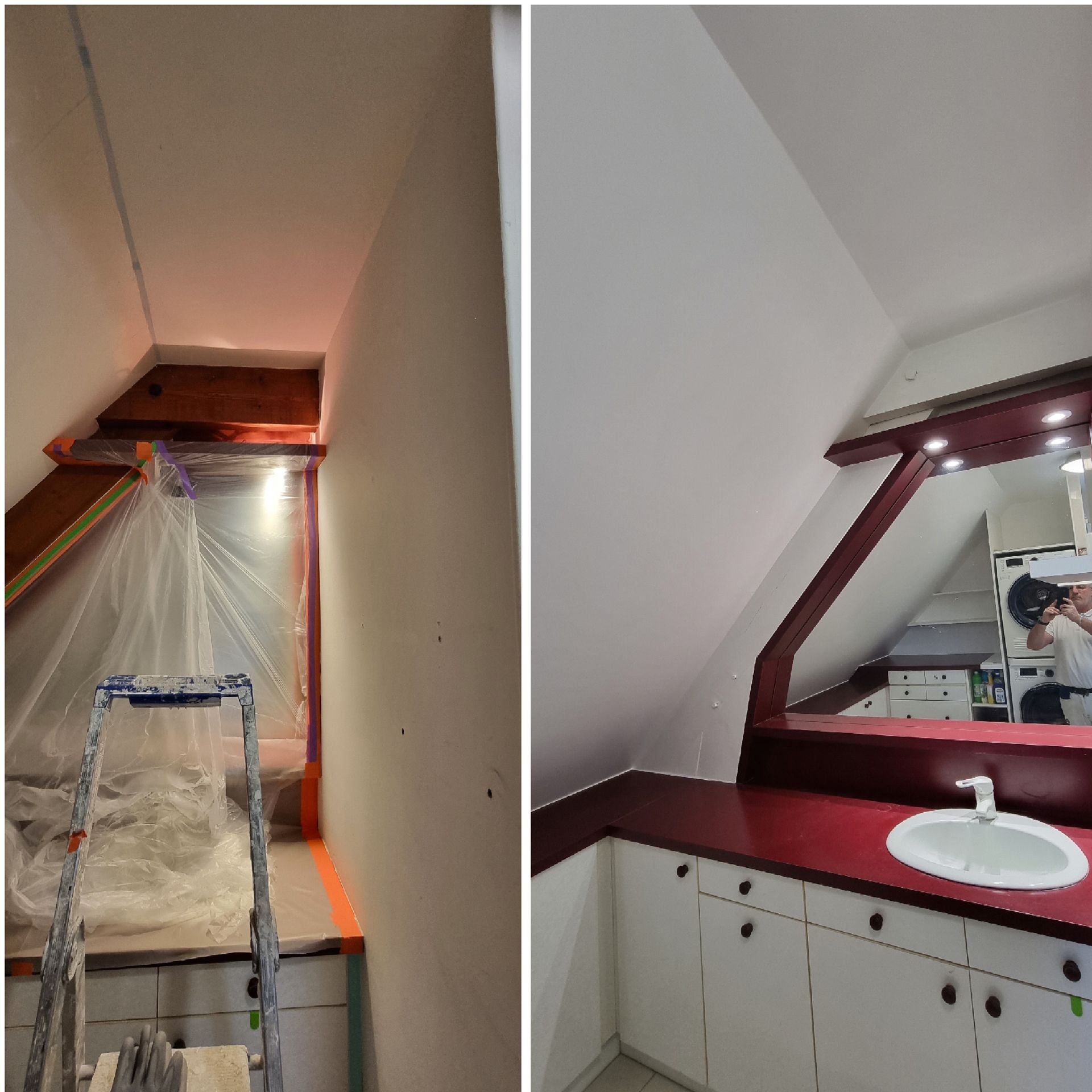 - Placo, joints, remise en état, peinture intérieure (murs et plafonds) ;